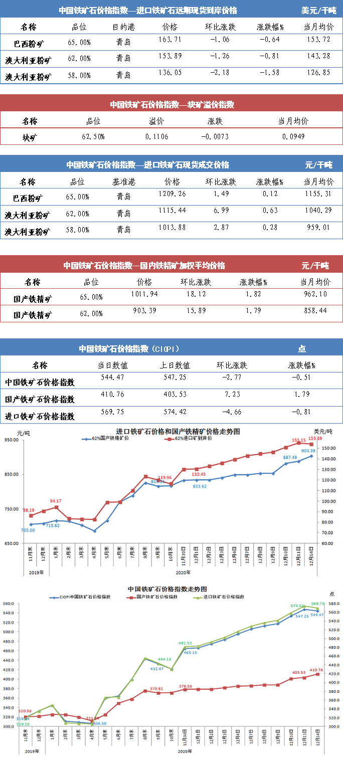 【行業指數】12月14日中國鐵礦石價格指數