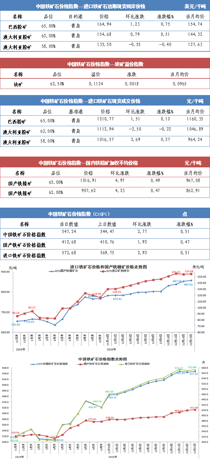 【行業(yè)指數(shù)】12月15日中國鐵礦石價格指數(shù)