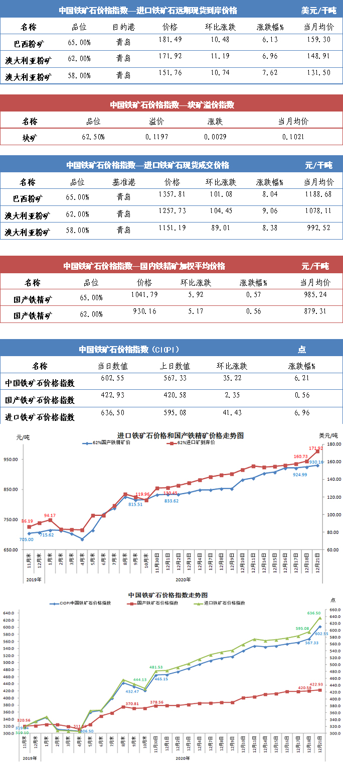 【行業(yè)指數(shù)】12月21日中國鐵礦石價格指數(shù)