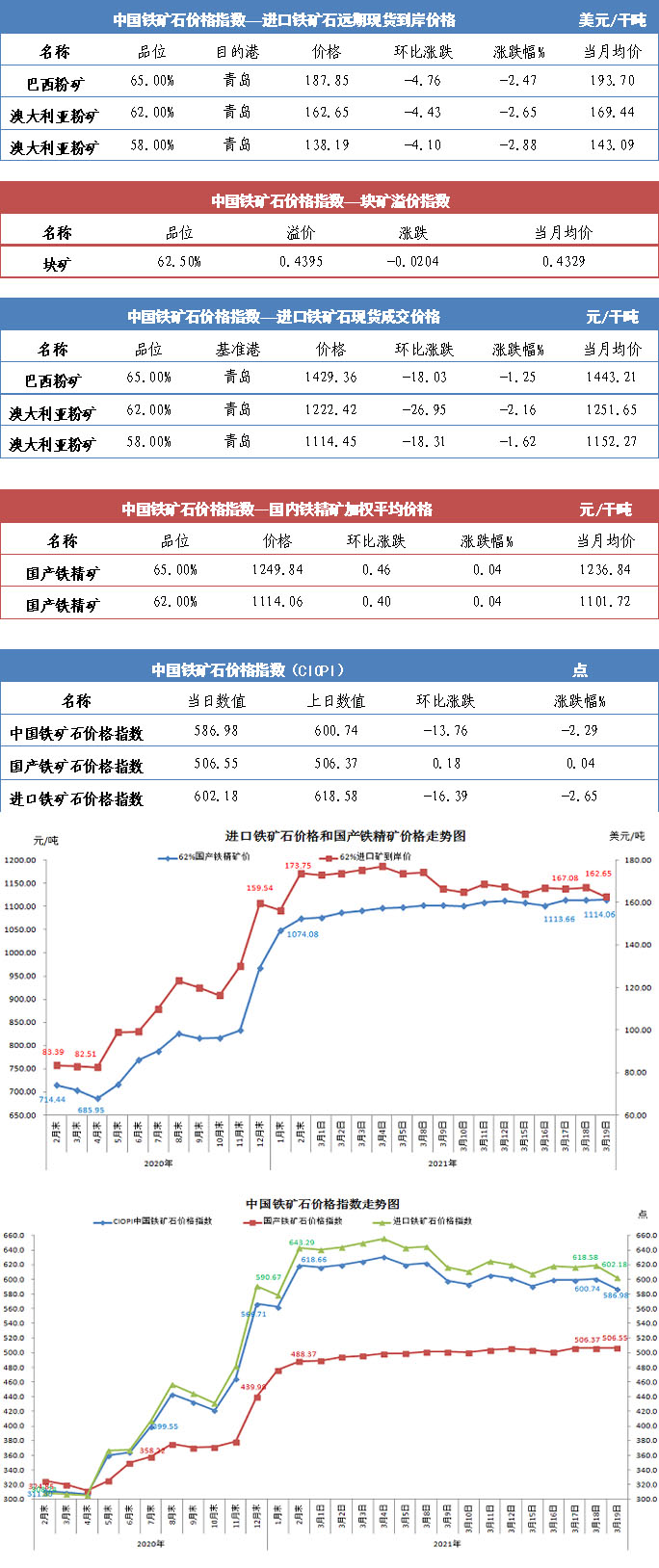 【行業指數】3月19日中國鐵礦石價格指數