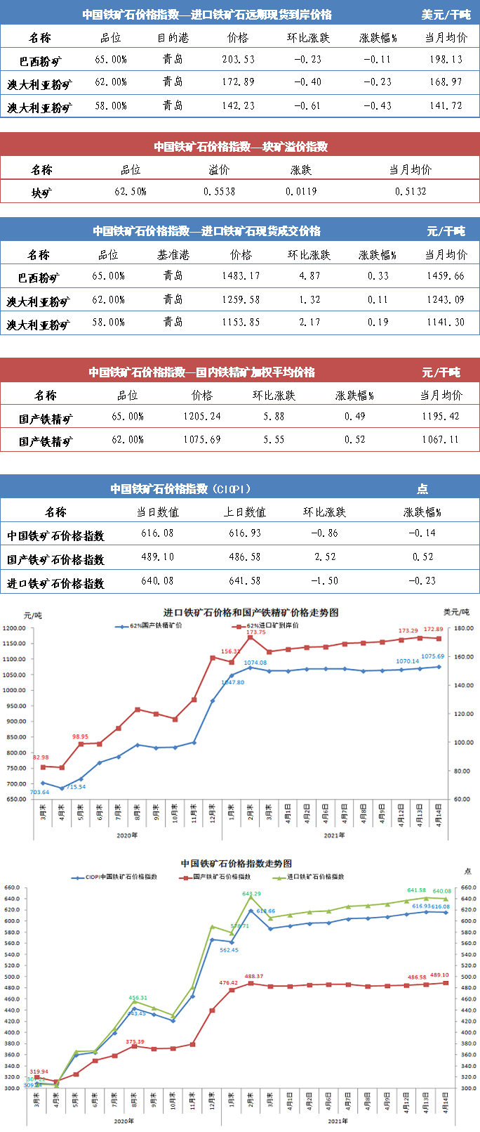【行業指數】4月14日中國鐵礦石價格指數