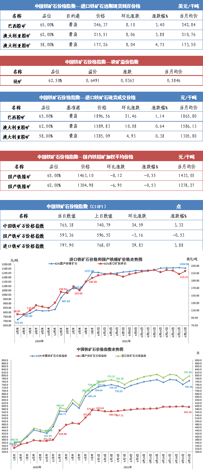 【行業(yè)指數(shù)】6月22日中國鐵礦石價(jià)格指數(shù)