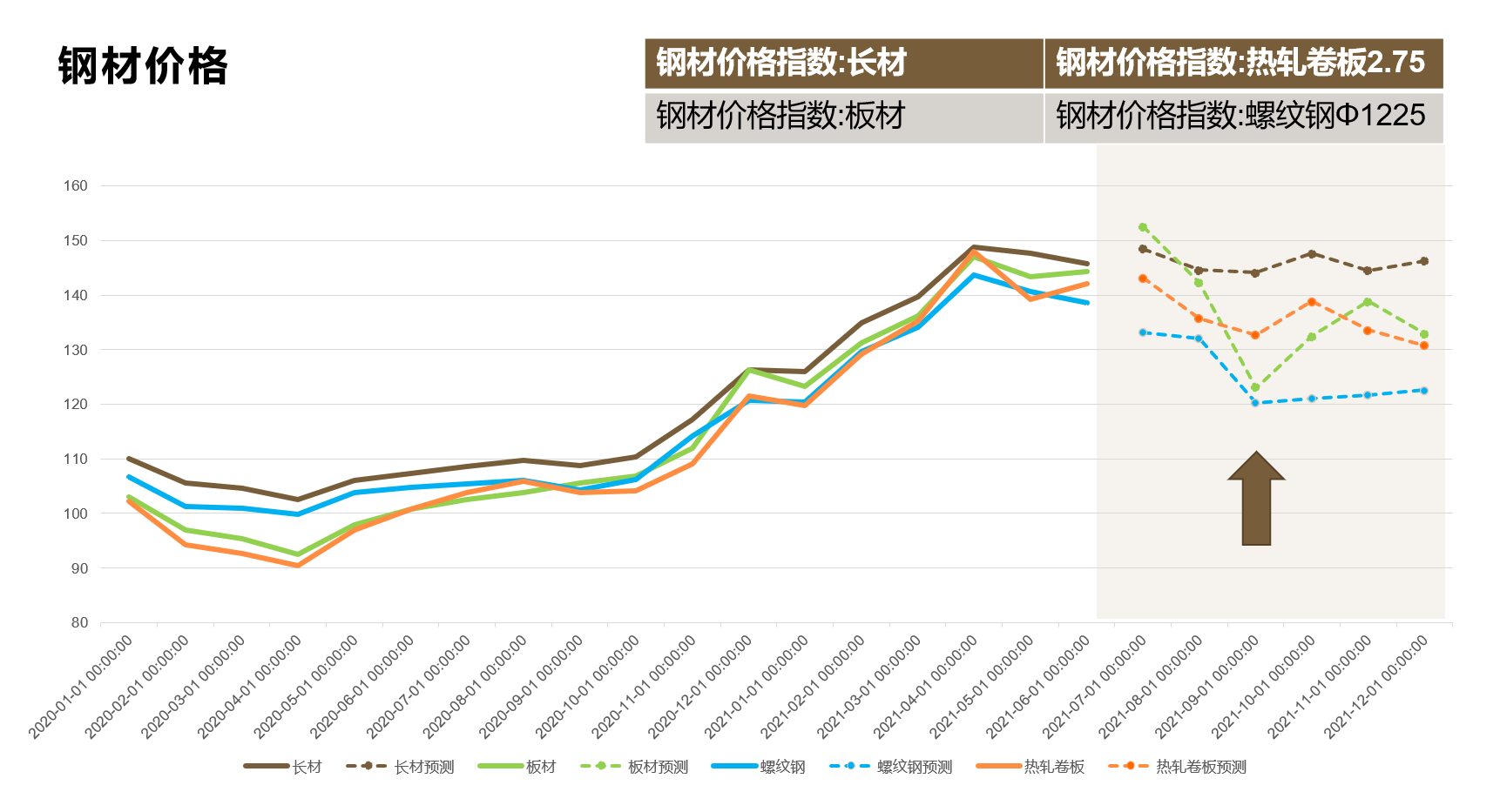 崔煜展示了其研究模型對鋼鐵行業(yè)上下游一些指標(biāo)的預(yù)測結(jié)果。部分結(jié)果如下圖: