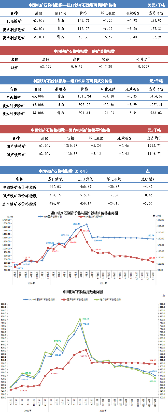 【行業(yè)指數(shù)】9月15日中國鐵礦石價格指數(shù)