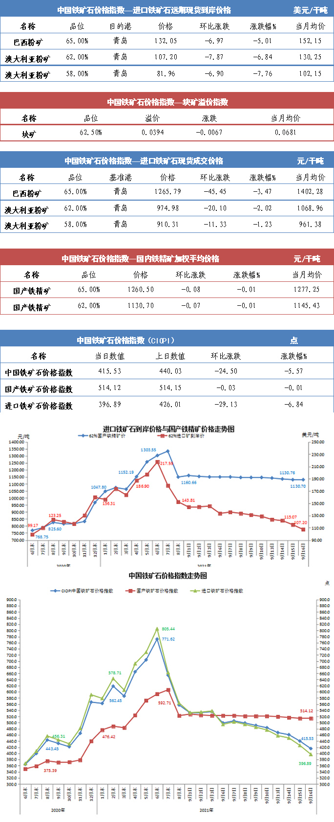 【行業(yè)指數(shù)】9月16日中國(guó)鐵礦石價(jià)格指數(shù)