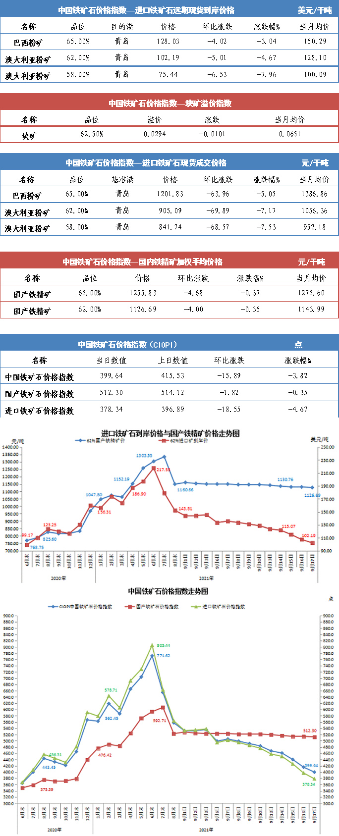 【行業(yè)指數(shù)】9月17日中國鐵礦石價格指數(shù)