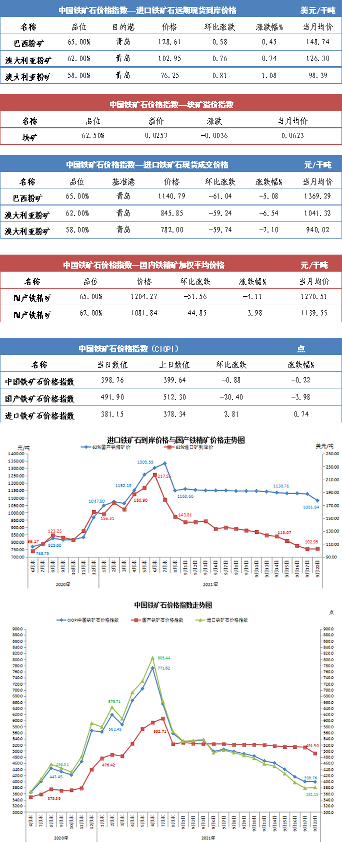 【行業指數】9月22日中國鐵礦石價格指數