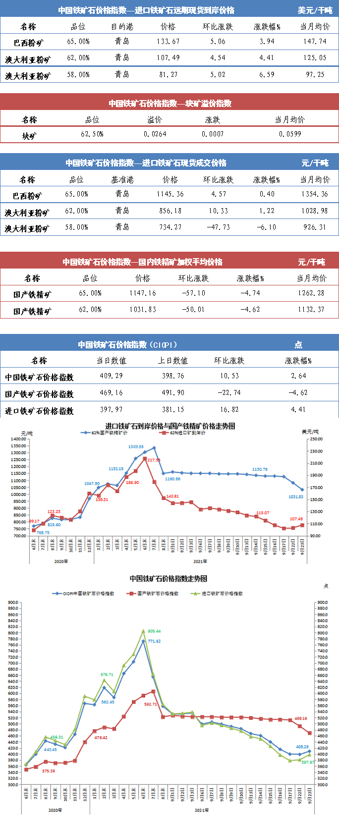 【行業(yè)指數(shù)】9月23日中國鐵礦石價格指數(shù)