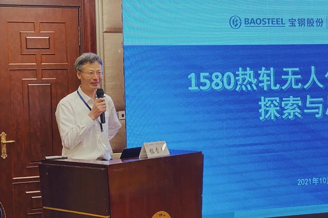 寶鋼股份熱軋廠首席工程師單旭沂博士作《寶鋼股份1580熱軋無人化產線建設探索與思考》主題報告