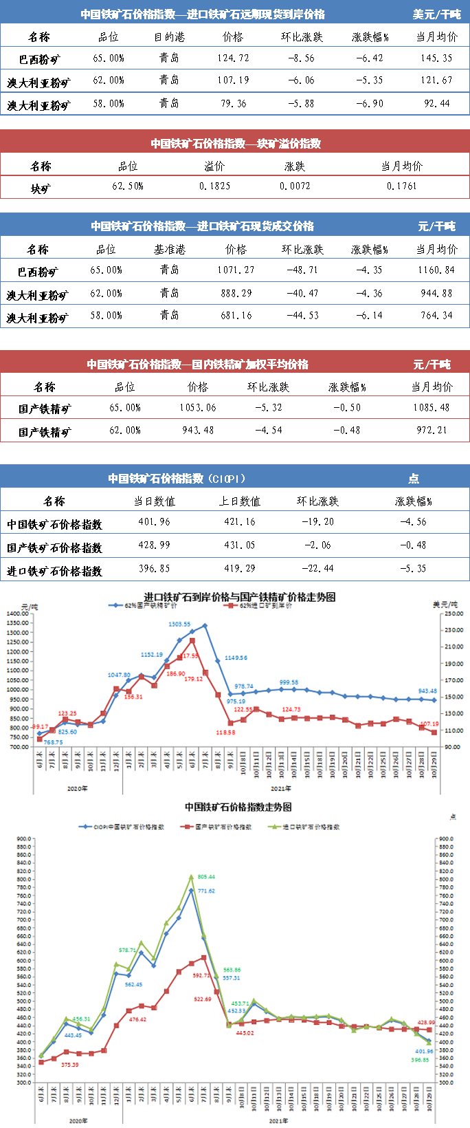 【行業指數】10月29日中國鐵礦石價格指數