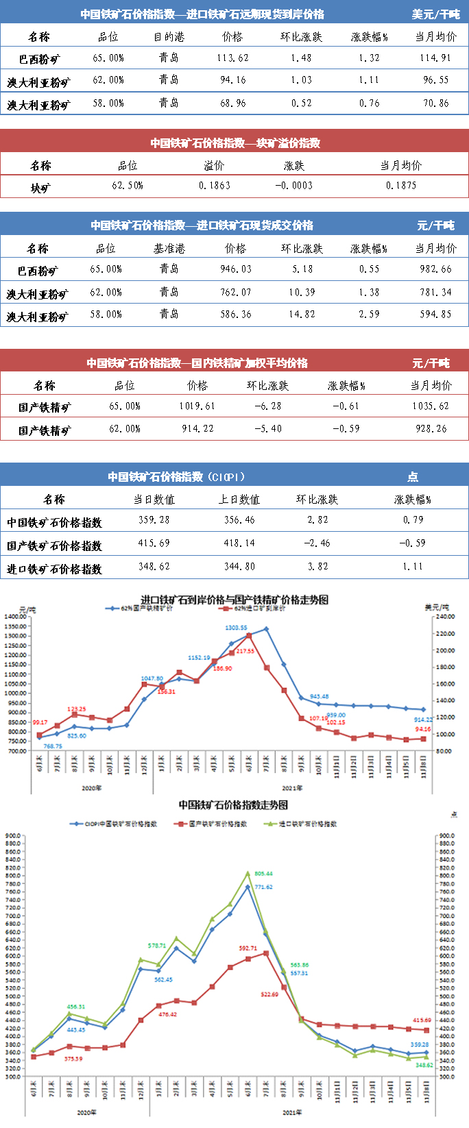 【行業(yè)指數】11月8日中國鐵礦石價格指數