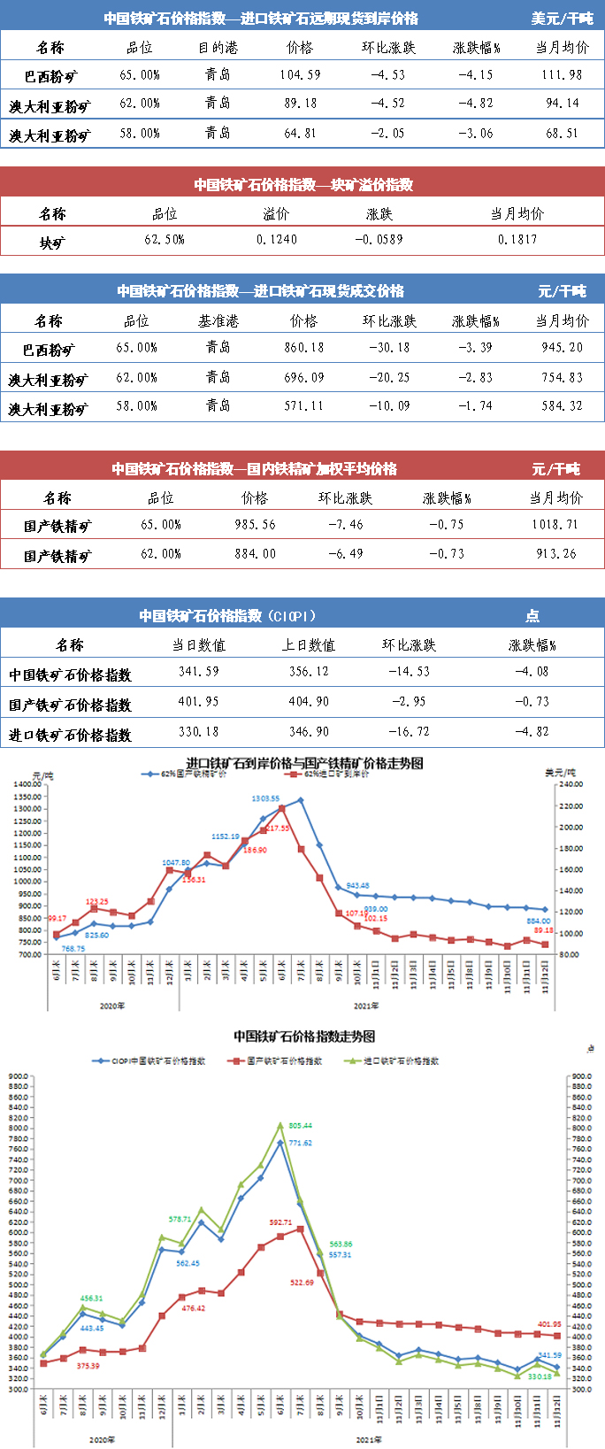 【行業(yè)指數(shù)】11月12日中國鐵礦石價格指數(shù)