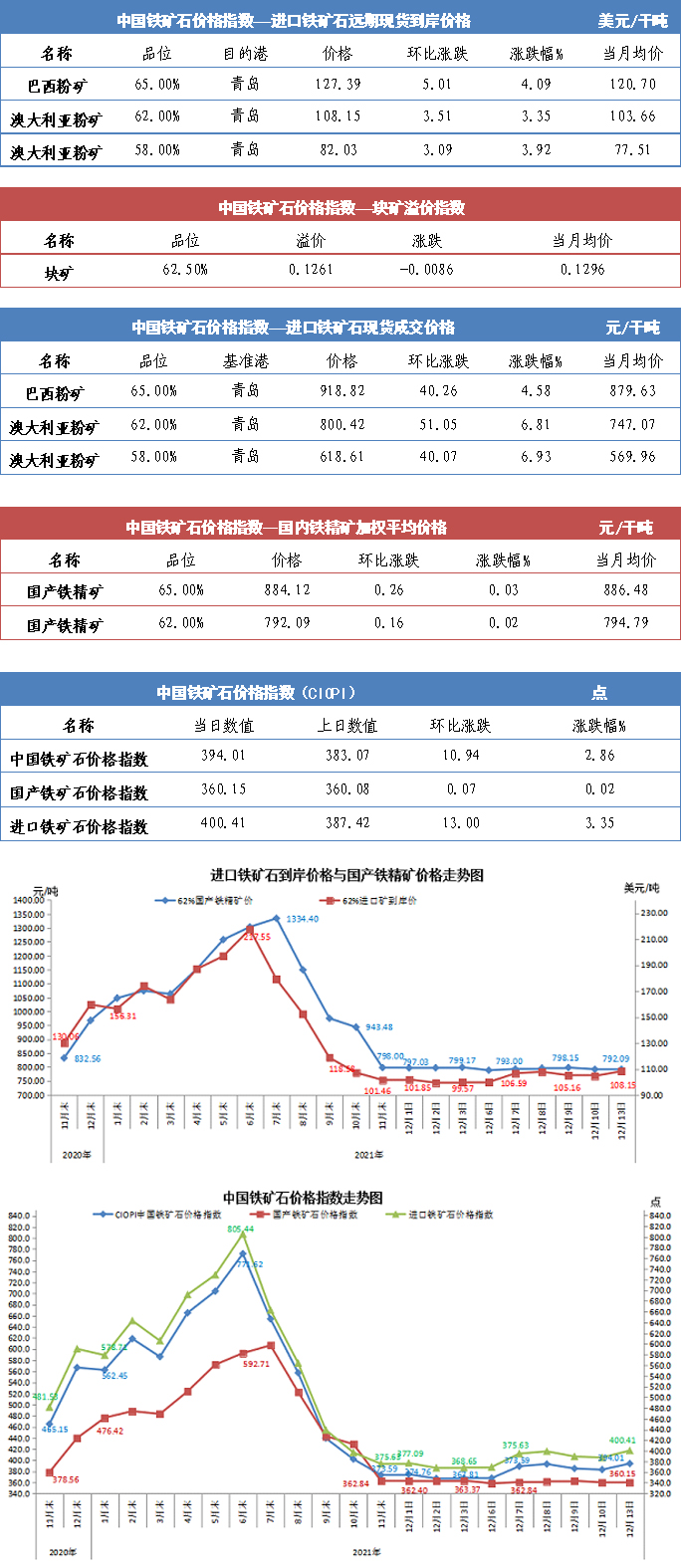 【行業(yè)指數(shù)】12月13日中國鐵礦石價格指數(shù)