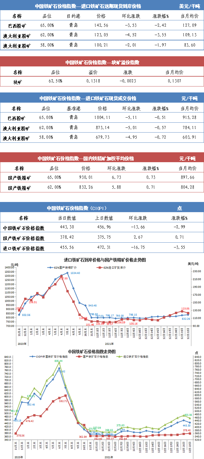 【行業(yè)指數(shù)】12月22日中國(guó)鐵礦石價(jià)格指數(shù)