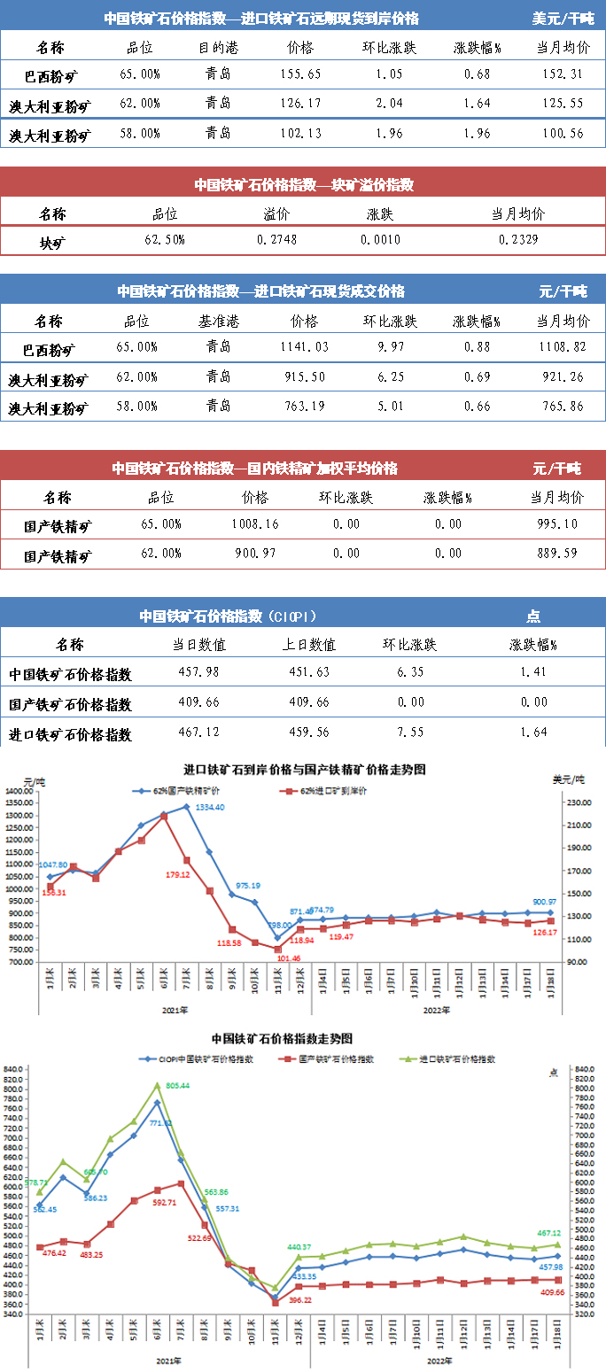 【行業(yè)指數(shù)】1月18日中國鐵礦石價格指數(shù)