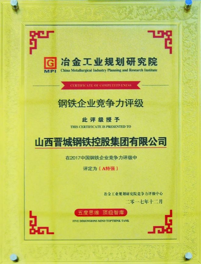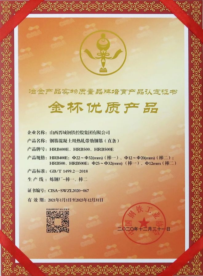 圖為晉鋼獲得“2021中國優(yōu)秀鋼鐵企業(yè)品牌”。