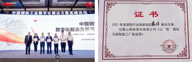 1、連獲榮譽(yù),矢“智”不渝。馬鋼“工業(yè)大腦”、“5G+智慧料廠”2個(gè)智慧制造優(yōu)秀成果案例參展第四屆“數(shù)字中國(guó)”建設(shè)峰會(huì);《以“智”描繪馬鋼智能工廠新藍(lán)圖》在中國(guó)鋼鐵工業(yè)數(shù)字化解決方案高峰論壇發(fā)布,喜獲“鋼鐵行業(yè)最佳智能制造解決方案”殊榮;《馬鋼基于5G+MEC邊緣計(jì)算平臺(tái)的智慧鋼鐵高質(zhì)量工業(yè)內(nèi)網(wǎng)建設(shè)與應(yīng)用項(xiàng)目》榮獲第四屆“綻放杯”5G應(yīng)用征集大賽-MEC邊緣計(jì)算專題賽決賽一等獎(jiǎng),入圍全國(guó)總決賽;基于工業(yè)互聯(lián)網(wǎng)平臺(tái)xIn3Plat冷軋“ALLINONE”智慧工廠”被認(rèn)定為2021年度安徽省智能工廠;馬鋼股份、馬鋼交材被認(rèn)定為2021年度馬鞍山市智能制造標(biāo)桿示范企業(yè)。冷軋總廠的“基于工業(yè)互聯(lián)網(wǎng)平臺(tái)xIn3Plat的冷軋“ALLINONE”智控創(chuàng)新應(yīng)用”入圍工信部2021年工業(yè)互聯(lián)網(wǎng)平臺(tái)創(chuàng)新領(lǐng)航應(yīng)用案例名單。