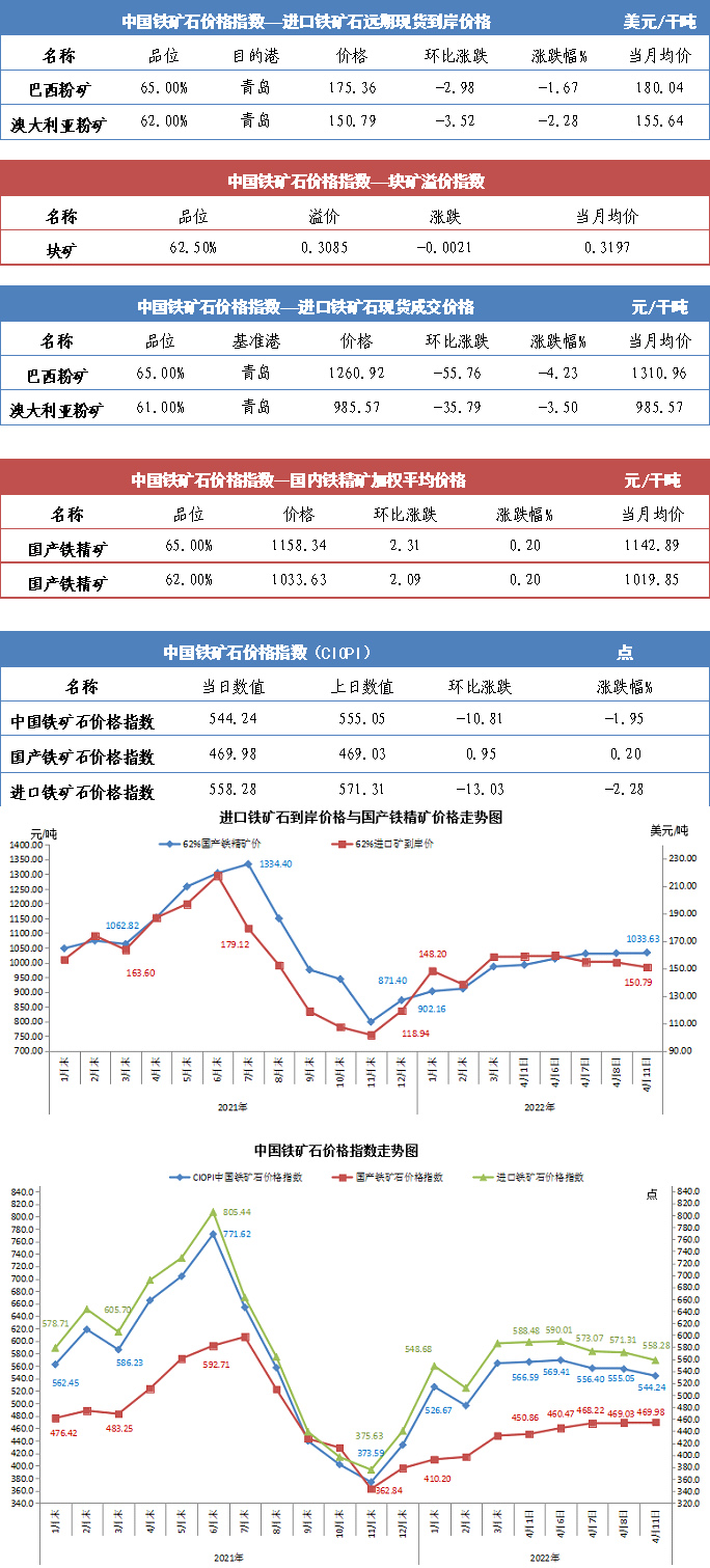 【行業(yè)指數(shù)】4月11日中國(guó)鐵礦石價(jià)格指數(shù)