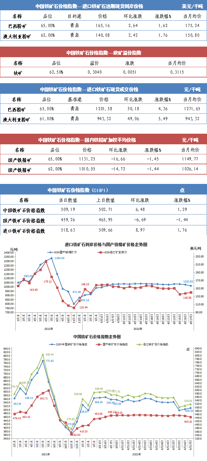 【行業(yè)指數(shù)】4月27日中國(guó)鐵礦石價(jià)格指數(shù)