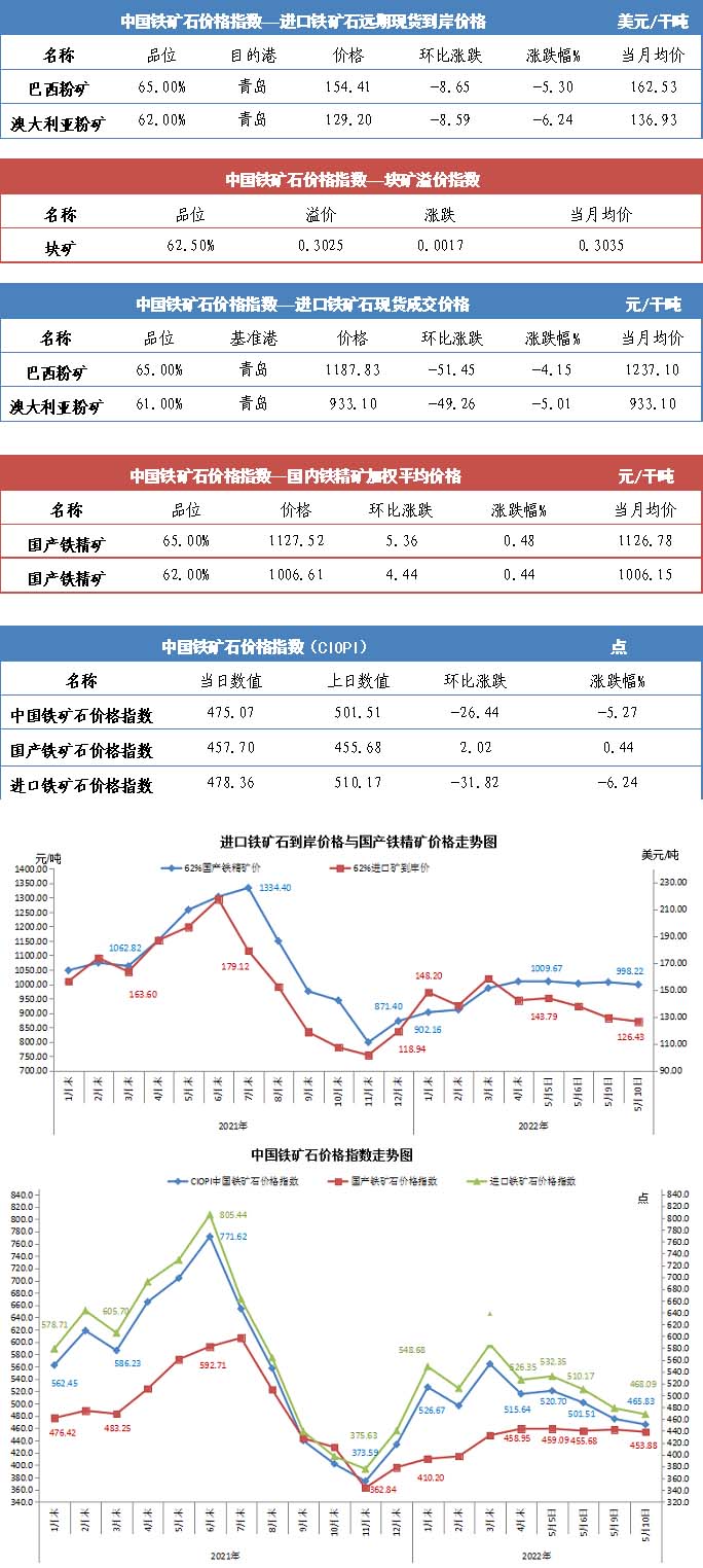 【行業(yè)指數(shù)】5月10日中國鐵礦石價(jià)格指數(shù)