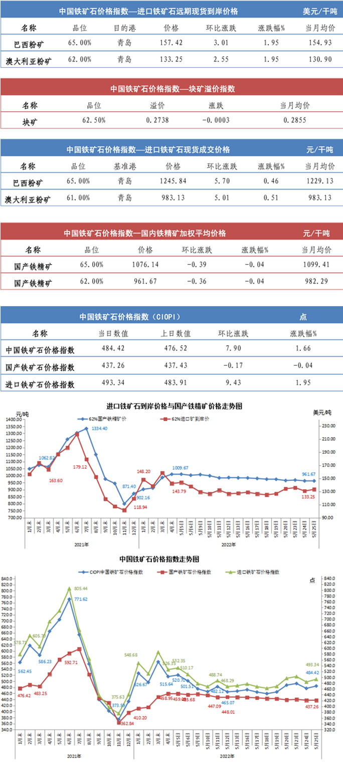 【行業指數】5月25日中國鐵礦石價格指數