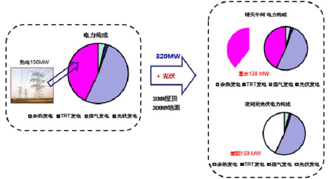 圖2 某鋼鐵企業引入新能源發電對現有系統的影響