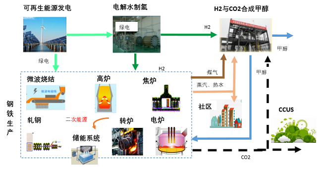 圖4 鋼鐵以“綠氫+綠電”為核心能源系統示意圖