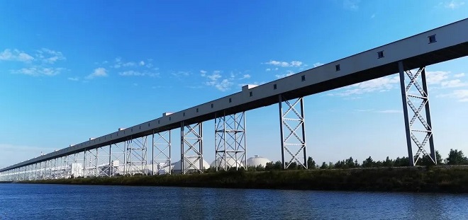 廠區與港口僅相距1.4公里,凌空飛架的管廊實現鋼鐵與海洋的“無縫銜接”。48公里長的皮帶通廊和271公里長的介質管廊,構建起全封閉物流網絡,海運物料直接入倉、生產原料直接運到產線。
