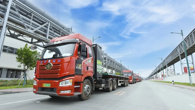 河鋼舉行氫能重卡投運全國首發式,首批次投放30輛49噸氫能重卡,標志著我國首條氫能重卡運輸線正式商業運營。