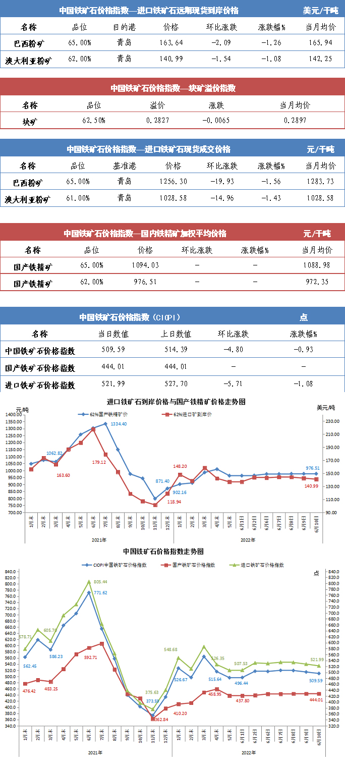 【行業(yè)指數(shù)】6月10日中國(guó)鐵礦石價(jià)格指數(shù)