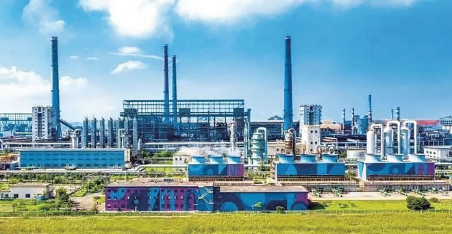 中國寶武寶鋼湛江鋼鐵廠區一角。(中國寶武寶鋼湛江鋼鐵 供圖)