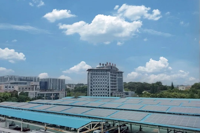 南鋼光伏發(fā)電板。(邵啟明 攝)