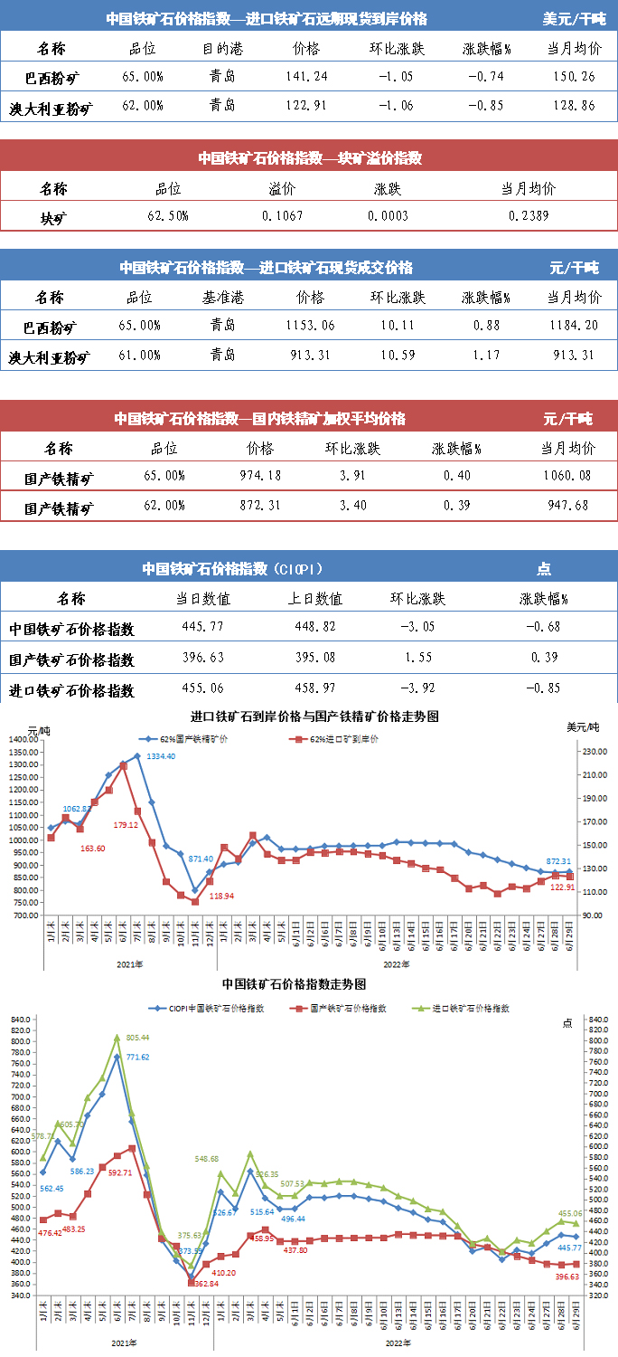 【行業(yè)指數(shù)】6月29日中國(guó)鐵礦石價(jià)格指數(shù)