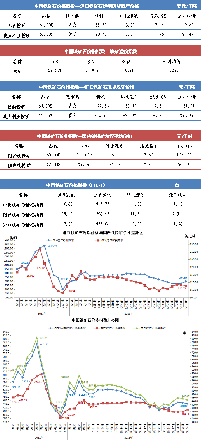 【行業(yè)指數(shù)】6月30日中國鐵礦石價格指數(shù)