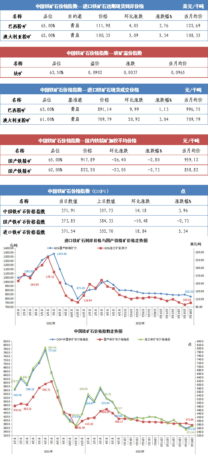 【行業指數】7月18日中國鐵礦石價格指數