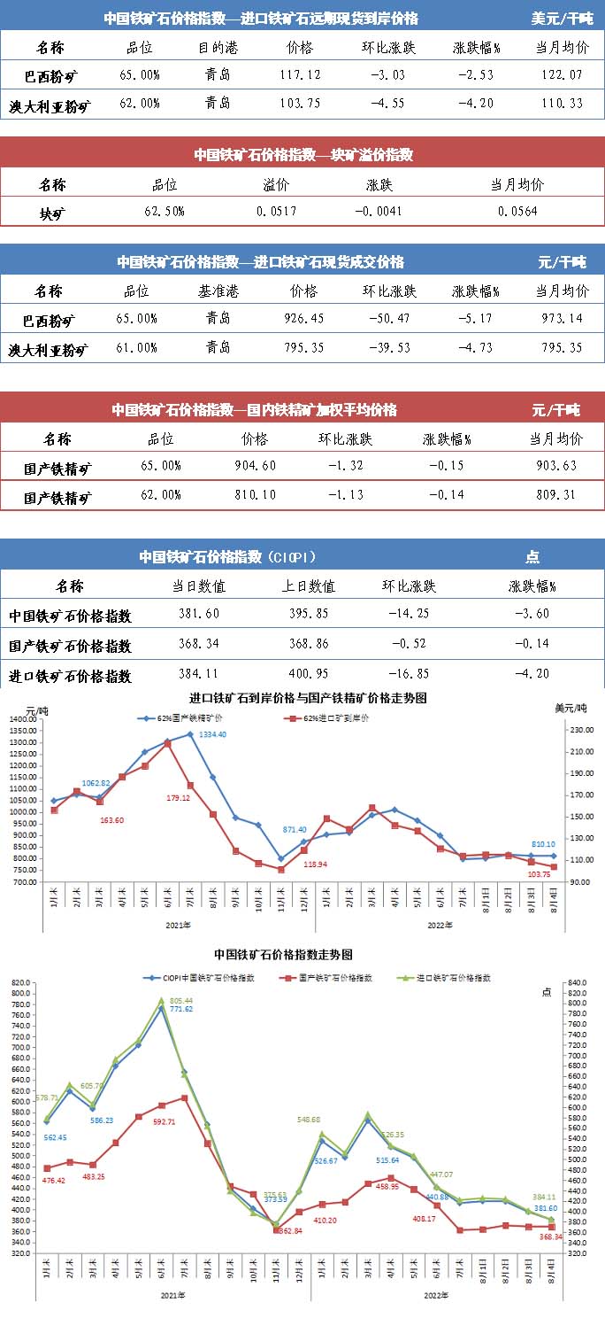 【行業(yè)指數(shù)】8月4日中國(guó)鐵礦石價(jià)格指數(shù)