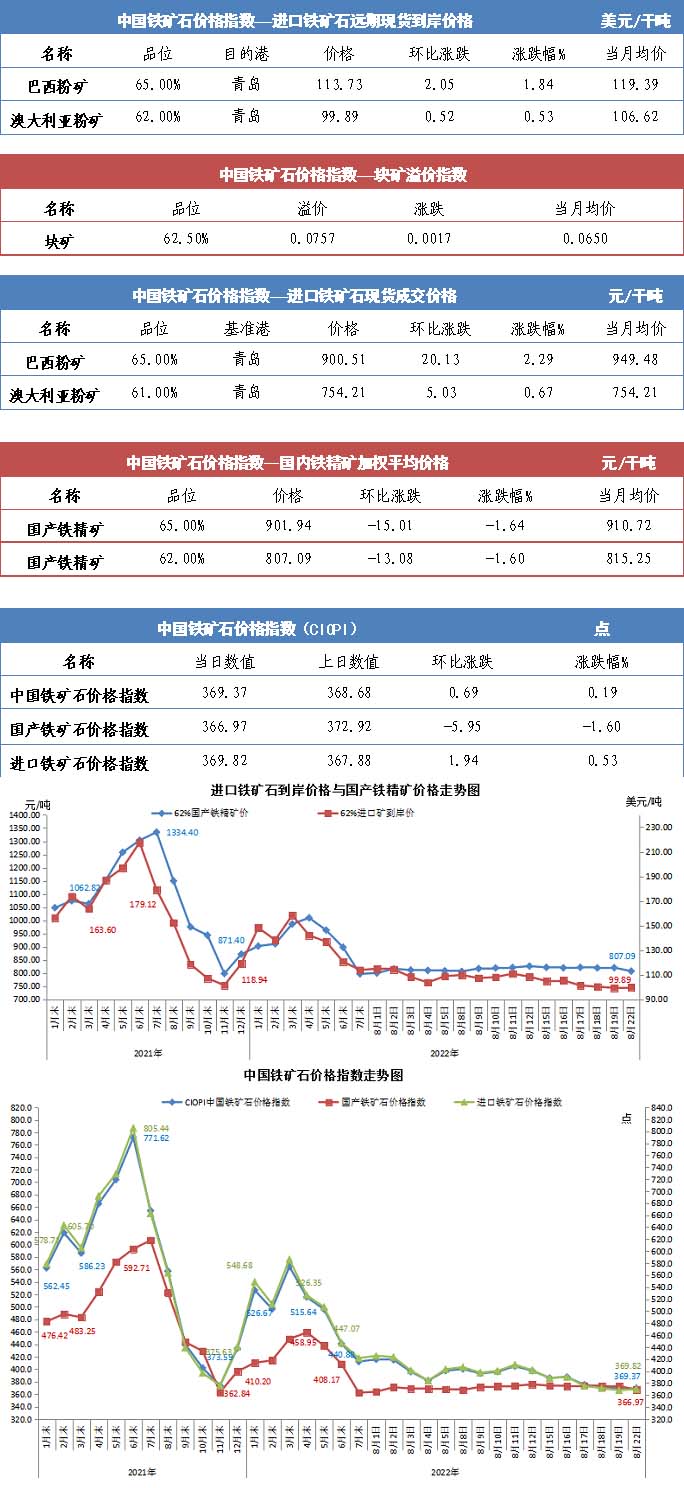 【行業(yè)指數】8月22日中國鐵礦石價格指數