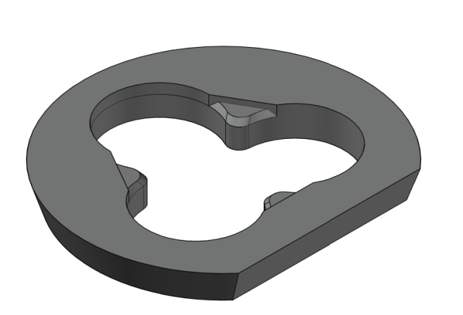 上述復合卡位式爐頂預制件,技術關鍵點在于:三角區單獨預制,厚度(高度)較外圍部分高;三角區上部設有三點均勻分布的卡托,防止頻繁使用時脫落;三角區與外圍接觸的部分與垂直方向成3°~5°的夾角;三角區與外圍接觸面上均勻分布了若干個防止脫落的輔助卡位孔;卡位孔與水平方向成5°的夾角且向上傾斜;外圍料分為上部和下部,為同批、一次性澆注成型。技術優點在于:在保證爐頂預制件使用壽命的同時,有效降低電弧爐爐頂對高能耗、高污染途徑制備原料的依賴性,降低爐頂預制件的成本;有效解決了電弧爐爐頂預制件復合結構不緊密、三角區容易提前脫落等問題;實現了電弧爐爐頂三角區與外圍部分壽命同步的設想。