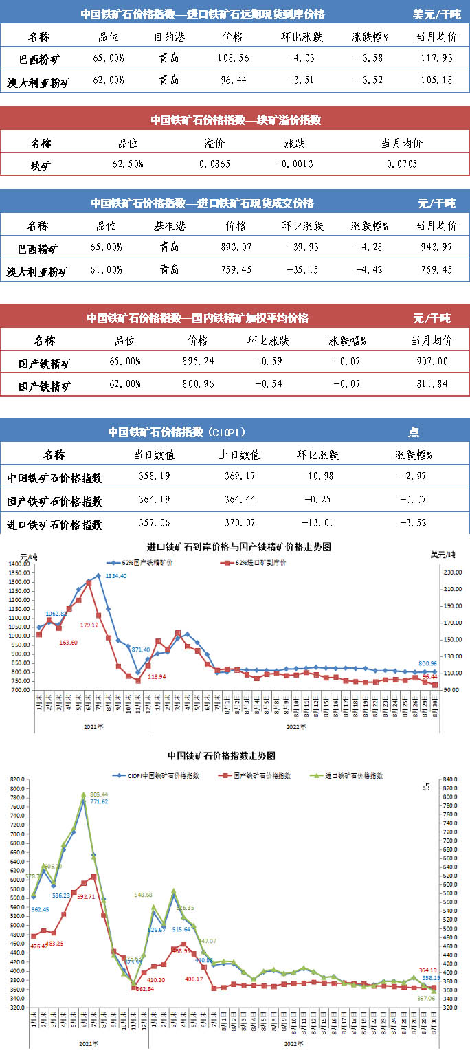 【行業(yè)指數(shù)】8月30日中國鐵礦石價格指數(shù)