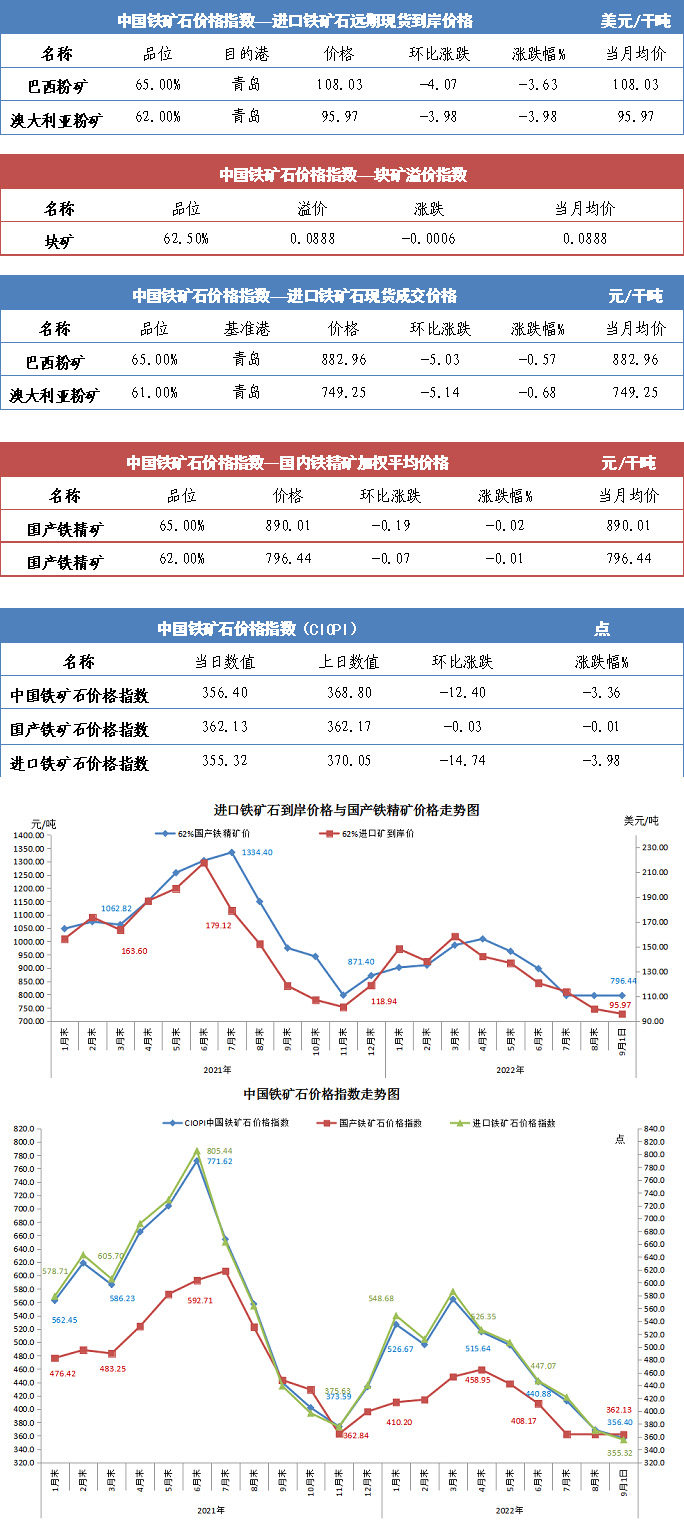 【行業(yè)指數(shù)】9月1日中國鐵礦石價(jià)格指數(shù)