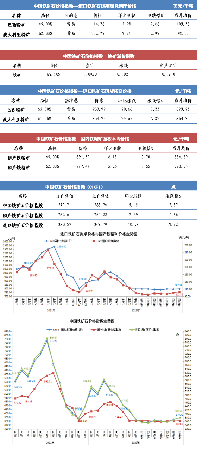【行業(yè)指數(shù)】9月9日中國鐵礦石價格指數(shù)