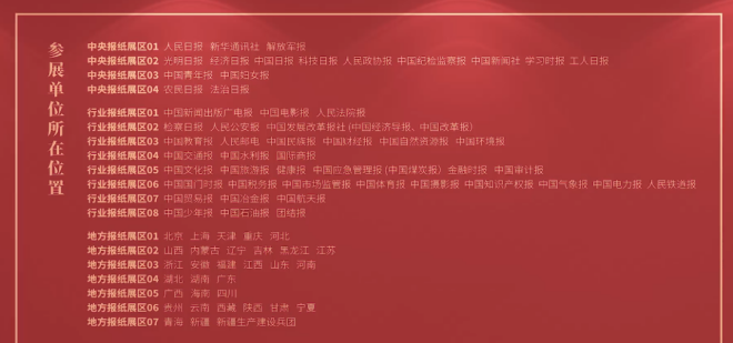 本次展覽將同步在國家新聞出版署官網、中國文明網和人民網同步上線,免費向社會公眾開放,展覽時間持續至今年年底。主展內容分為“新時代黨報圖文展區”“新時代黨報優秀版面展區”“黨報老報紙展區”“黨報人風采展區”和“黨報人書畫展區”五部分,參展內容、人物具體展示了人民日報社、新華通訊社、解放軍報社等中央新聞單位,部分行業報,全國各?。ㄗ灾螀^、直轄市)和新疆生產建設兵團所屬黨報的歷史沿革、基本情況、融合發展成果,遴選展出了黨的十八大以來的近200幅黨報優秀版面,展示回顧了100份黨的不同歷史時期的老報紙圖片,簡要介紹了百年來尤其是進入新時代后黨報系統涌現出的100余位優秀報人,集中展示近90幅新時代黨報系統工作者書畫作品。