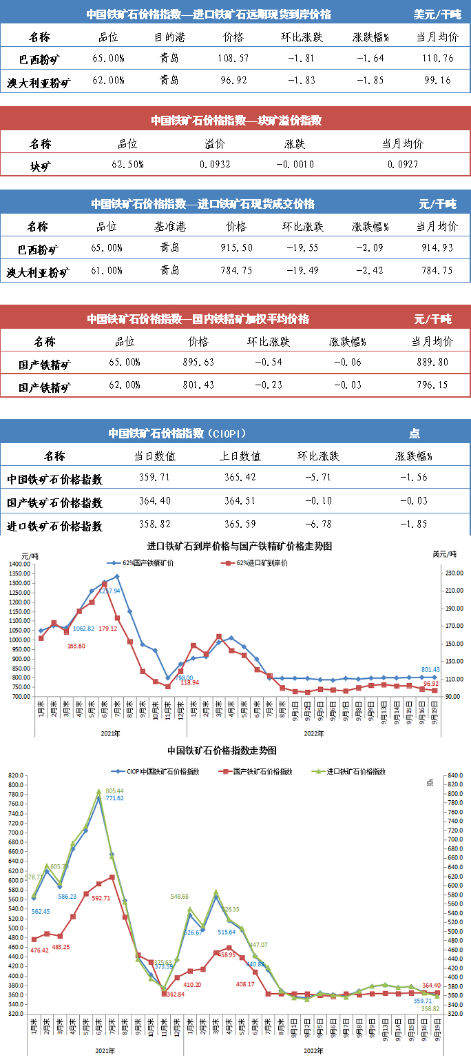 【行業(yè)指數(shù)】9月19日中國鐵礦石價(jià)格指數(shù)