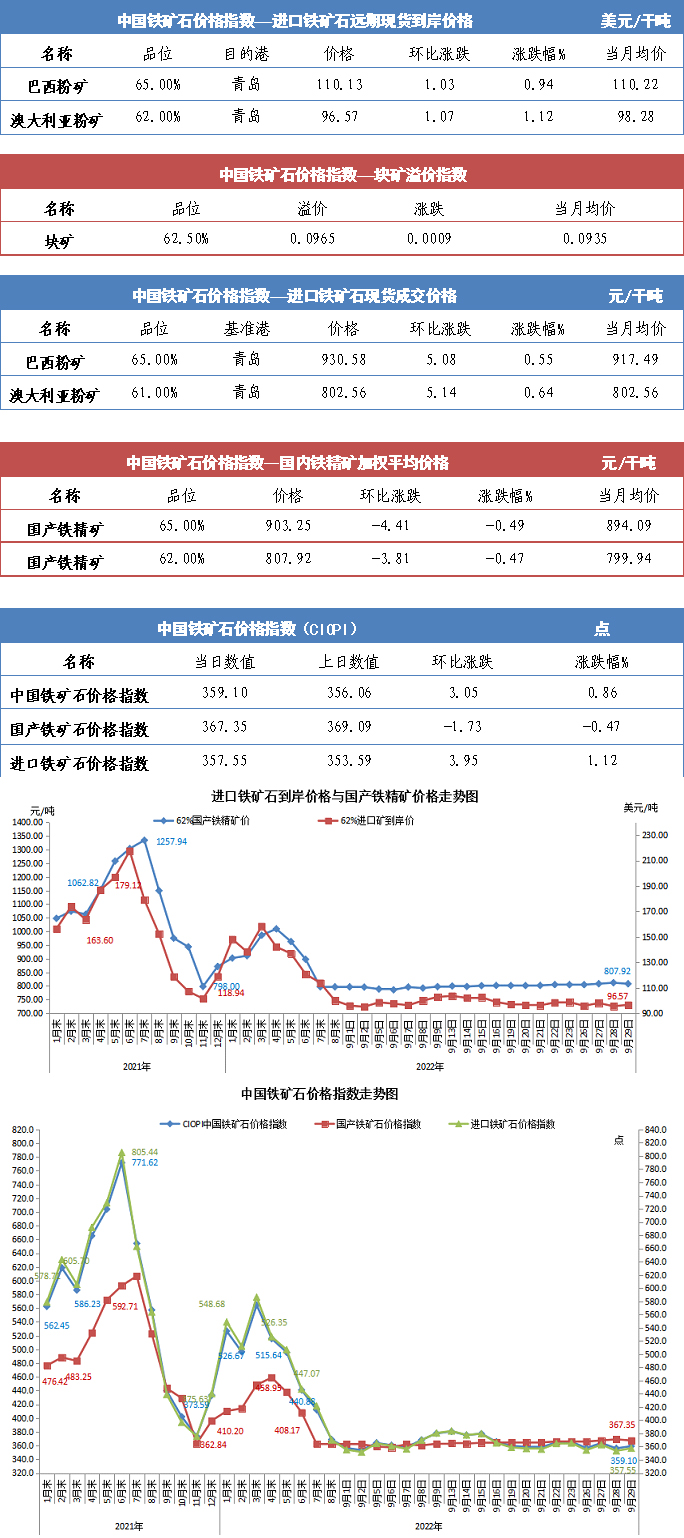【行業指數】9月29日中國鐵礦石價格指數