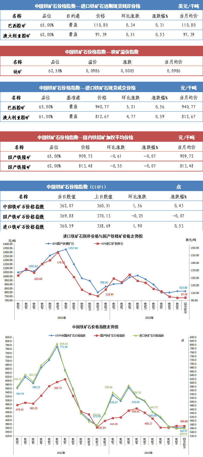 【行業(yè)指數(shù)】10月10日中國鐵礦石價(jià)格指數(shù)
