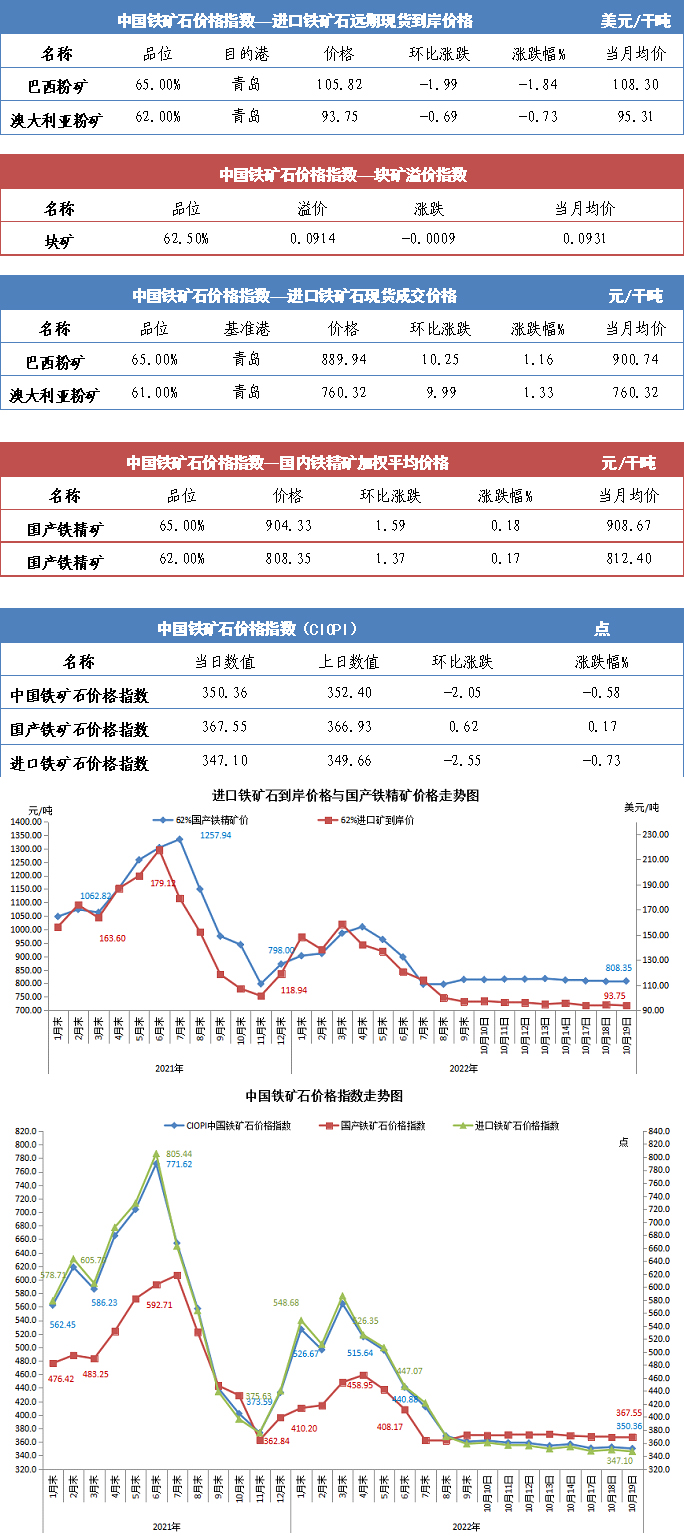 【行業(yè)指數(shù)】10月19日中國(guó)鐵礦石價(jià)格指數(shù)