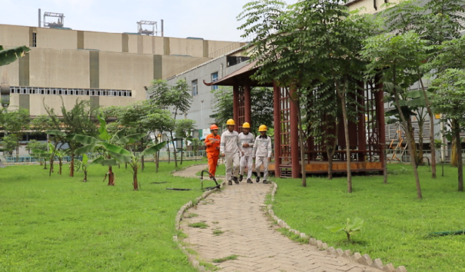 作為我國鋼鐵行業環保標桿德龍鋼鐵的一員,德信鋼鐵在快速發展的同時積極落實環保理念,“德信標準”遠超當地環保標準,經第三方檢測,顆粒物、二氧化硫、一氧化氮的實際排放數值分別為印尼當地環保標準的 17.57%、0.55%、1.83%。為了打造環境優美的綠色工廠,德信鋼鐵還在工廠的通道兩側栽種了大量樹木,打造出了綠色景觀。