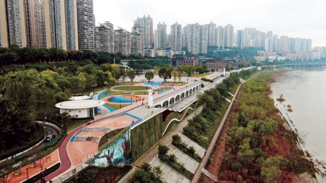 圖為中國十九冶承建的重慶九龍灘“兩江四岸”治理提升工程。