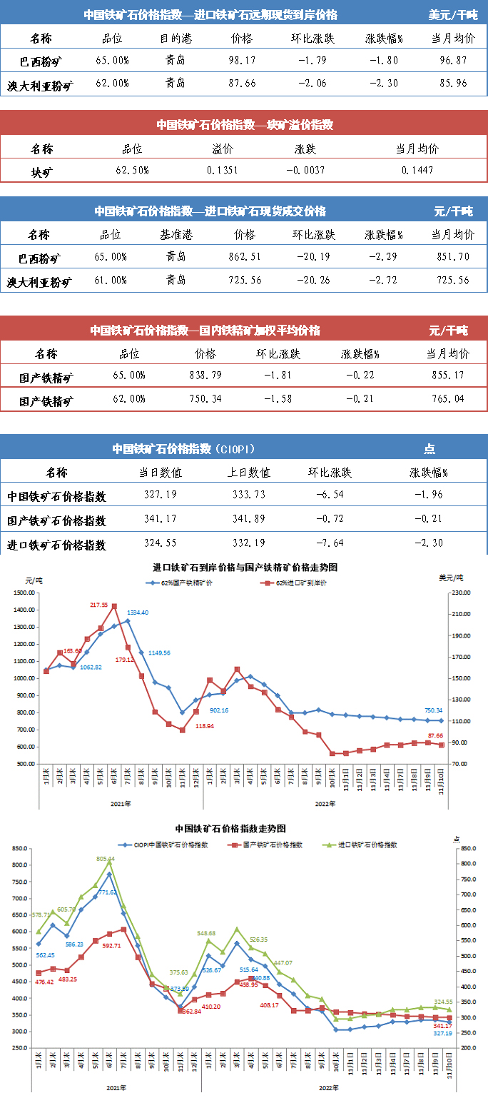 【行業(yè)指數(shù)】11月10日中國鐵礦石價(jià)格指數(shù)