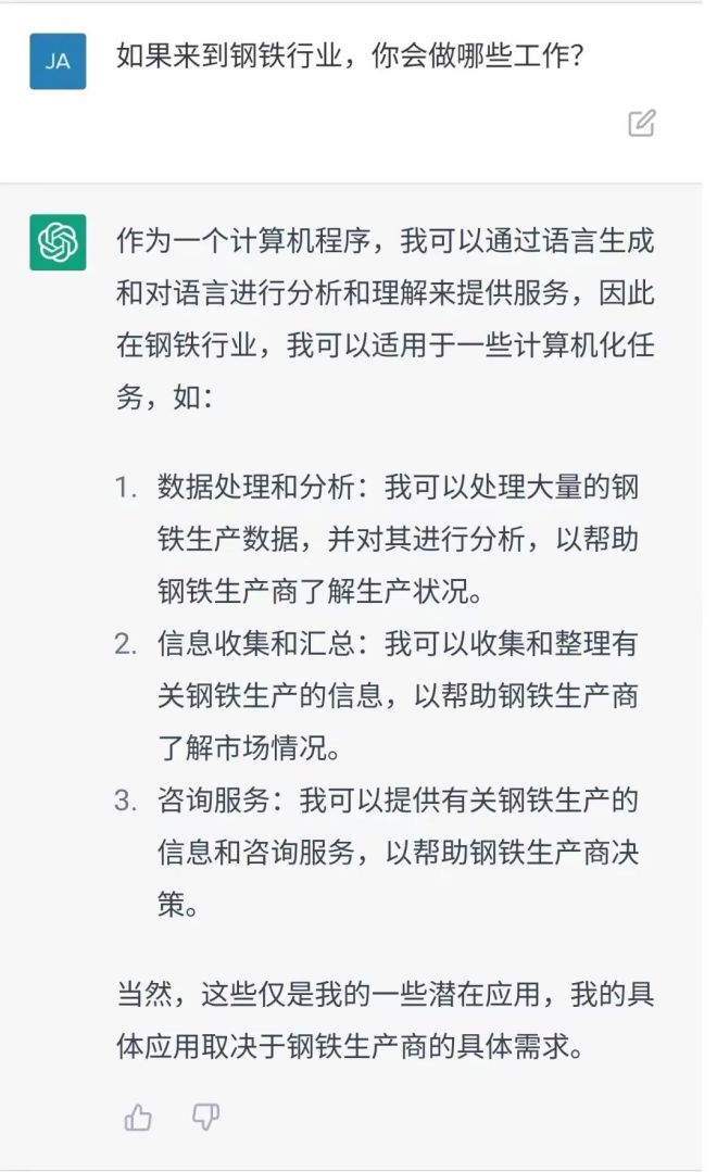 經(jīng)過這場與人工智能ChatGPT的深度對話,《中國冶金報》記者有了一些切身的體驗和收獲。